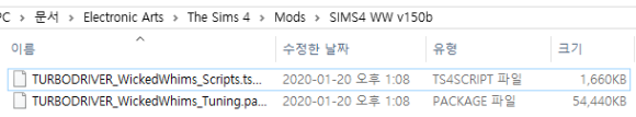 WW란? Wicked Whims로 흔히 리사모드(리얼사랑모드)로 알려진 모드. 아찔한 욕망으로 번역된 후 아찔한 욕망으로 불리고 있음. WW 설치 시 (1)MCCC처럼 LastException 예외 오류 감지 기능과 (2)아찔한 취향, 아찔한 영상산업 등이 모드를 기반으로 하기 때문에 미리 설치하면 좋다. (19 컨텐츠 계열의 모드를 사용하고 싶지 않다면 패스해도 좋음) 다운로드 : Wicked Whims 1) 최신 버전 파일을 다운받는다 2) 모드 폴더에 SIMS4 WW 폴더를 만들고 폴더명 뒤에 최신 버전 넘버를 붙인다 (폴더명은 마음대로 지정해도 됩니다) : 2020/01/23 현재 최신 버전은 v150b이므로 SIMS4 WW v150b로 폴더명 지정 3) 다운받은 파일을 압축풀기합니다 ![]() ![]() ![]() ![]() |